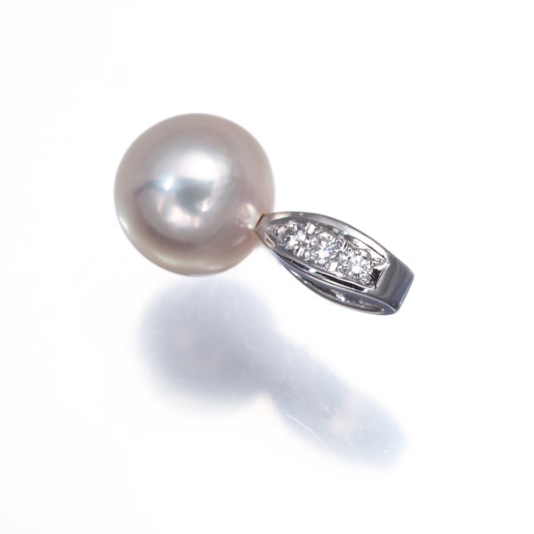 上質ダイヤモンドの瑞々しさとともに飾られた厳選アコヤ真珠は エクボ等も見られないなめらかな肌とピンクの干渉色を纏った上品な輝きが実に美しい一珠。様々な装いにお楽しみいただきたい ミキモトの素敵なペンダントトップです。
