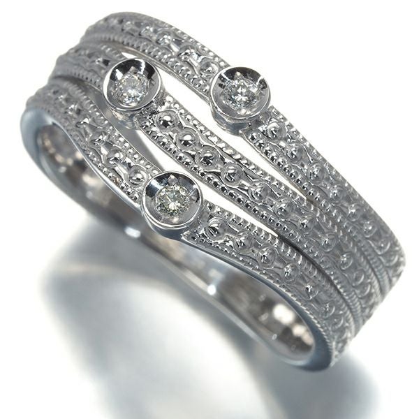 水野薫子 リング ダイヤ ダイヤモンド 0.05ct 3P ミルグレイン 13号 K18WG 【中古】BLJ