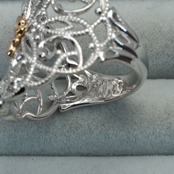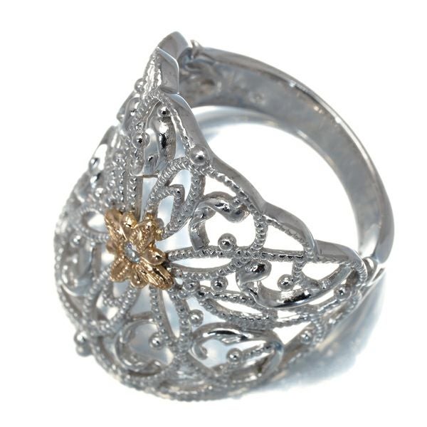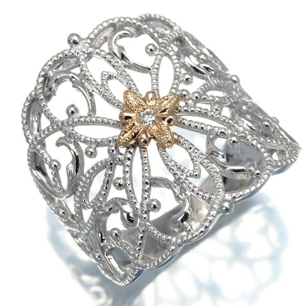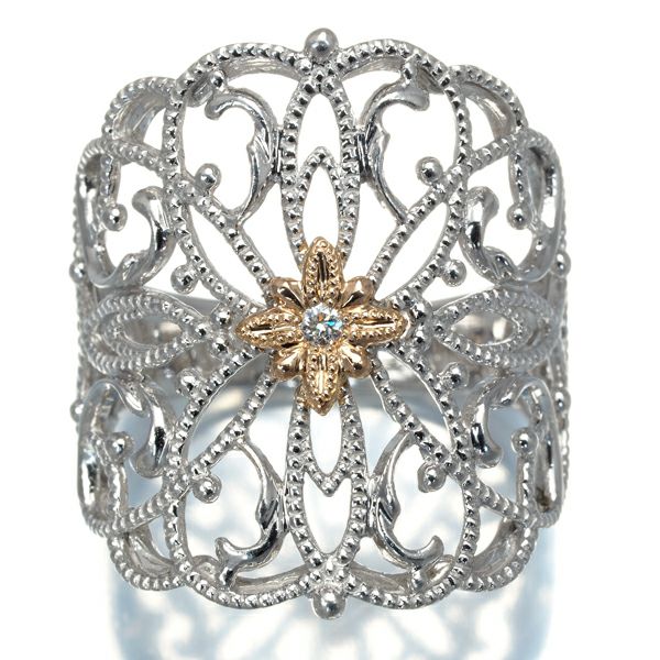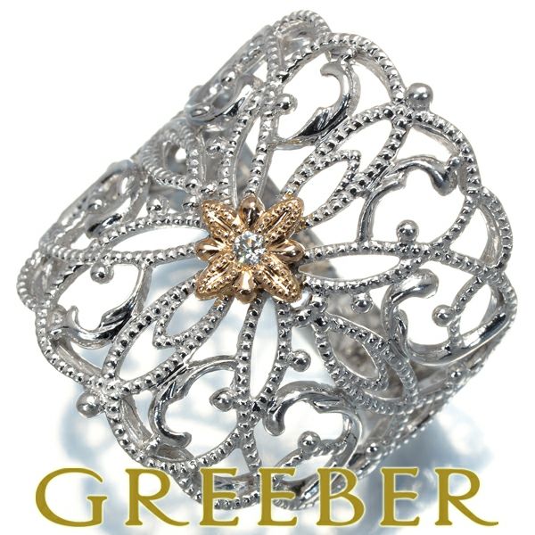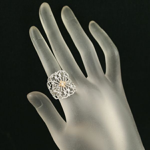 水野薫子 リング ダイヤ ダイヤモンド 0.02ct ミルグレイン 透かし フラワー 14号 K18WG/PG 【中古】BLJ