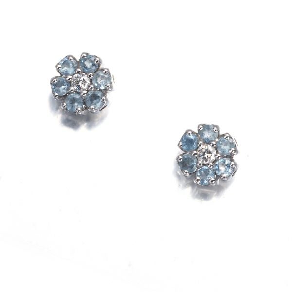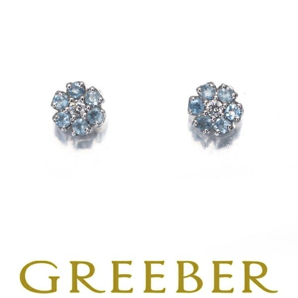 ポンテヴェキオ ピアス アクアマリン ダイヤ ダイヤモンド 0.01ct/0.01ct フラワー K18WG 【中古】BLJ