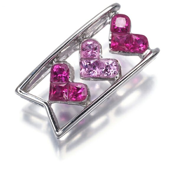 鮮やかなレディッシュピンクと繊細なピンクの彩りを可憐なハートモチーフにセットした QVCのペンダントトップ。艶やかな輝きが装いを美しく輝かせてくれます。
