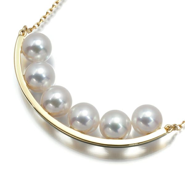 艶やかなゴールドに上質アコヤ真珠の美しい輝きを並べたタサキのバランスプラスネックレスです。