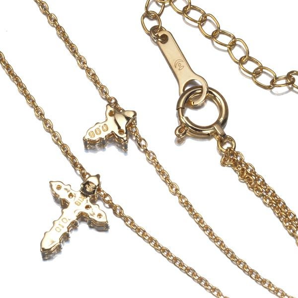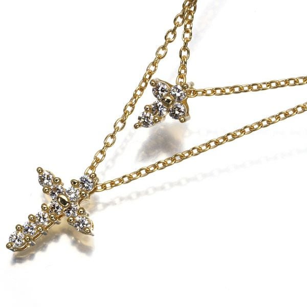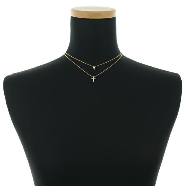 TASAKI タサキ ネックレス ダイヤ ダイヤモンド 0.10ct/0.06ct クロス 2連 K18YG 【中古】BLJ 大幅値下げ品