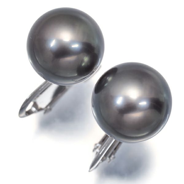 欠点がほぼ見られない素晴らしい肌艶を持つタサキ厳選ブラックパールの輝きを留めたイヤリング。耳元へ素晴らしいアクセントを与えてくれますよ。
