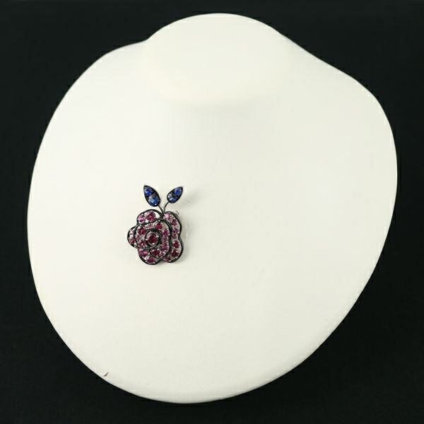 ブラックコーティングを施した薔薇モチーフへ瑞々しい煌めきと共に妖艶な彩魅せるロードライトガーネットを贅沢にセッティング。リーフデザインには色美しく眩いテリを披露するサファイアの輝きを飾ったタサキの高級ブローチです。