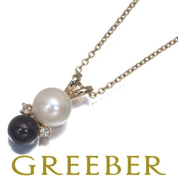ティファニー ネックレス パール 真珠 6.6mm オニキス ダイヤ ダイヤモンド K14YG 【中古】BLJ 限界値下げ品
