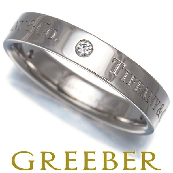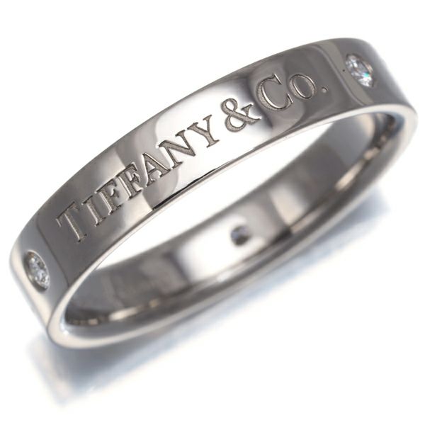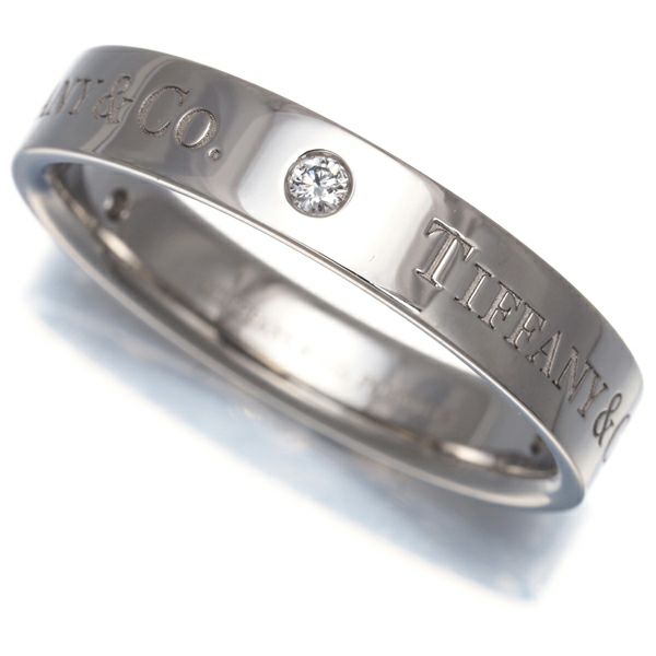 ティファニーのブランド名に飾られた厳選ダイヤが美しい輝きを放つ フラットバンド ダイヤモンドリングです。