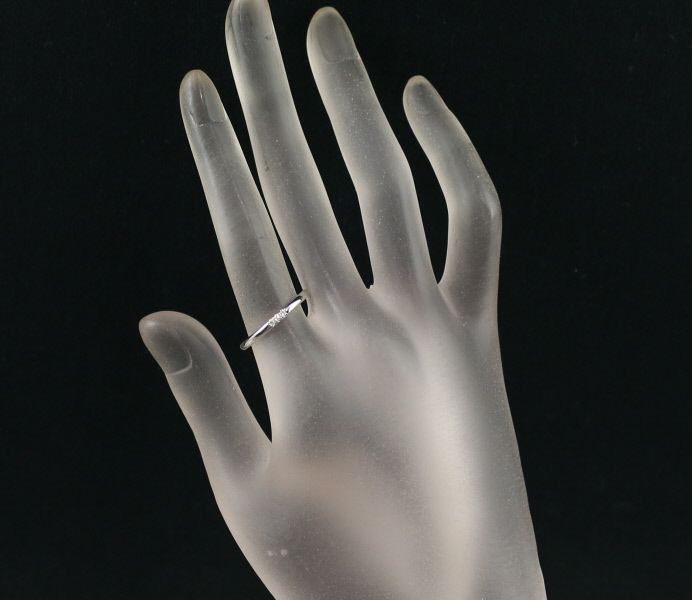 艶めくプラチナリングへ3石の厳選メレダイヤを飾ったティファニーのリングです。