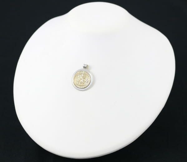 海や水・旅を守る神とされるセントクリストファーがモチーフ。キリストを抱いて川を渡ったシーンを描いた ティファニーのコイントップです。