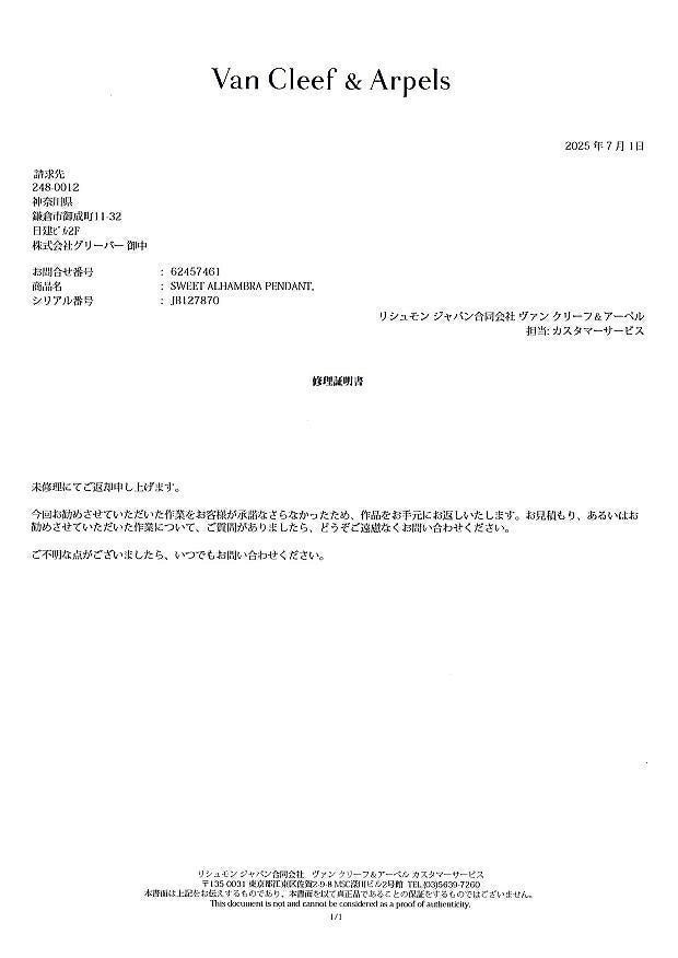 未修理証明書