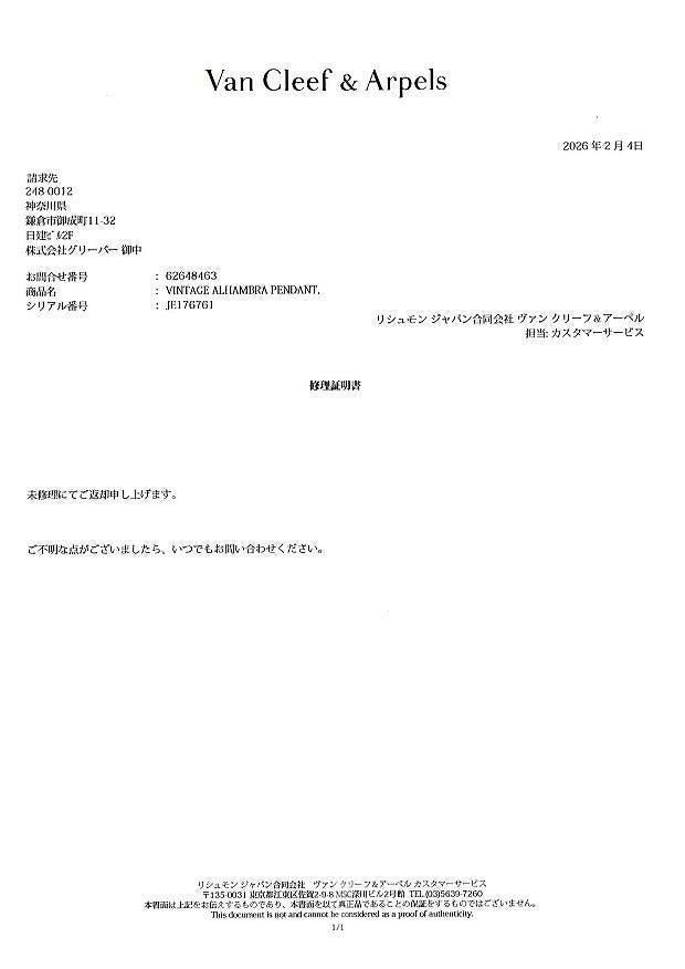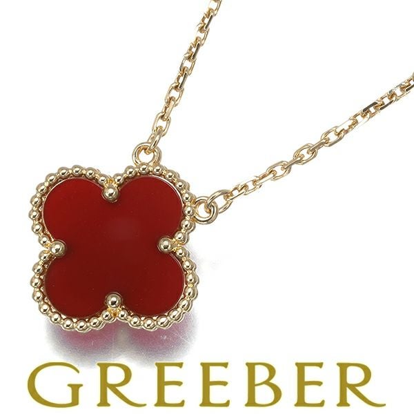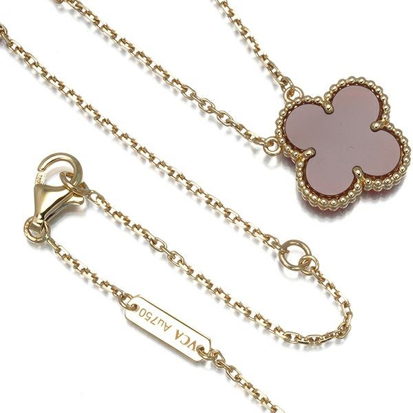 ヴァンクリーフ&アーペル ネックレス カーネリアン ヴィンテージアルハンブラ K18YG 未修理証明書【中古】BLJ