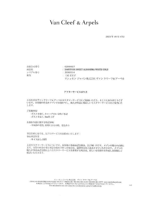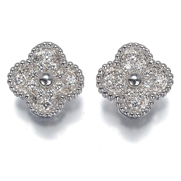 ヴァンクリーフ&アーペル ピアス ダイヤ ダイヤモンド スウィートアルハンブラ K18WG 保証書【中古】BLJ