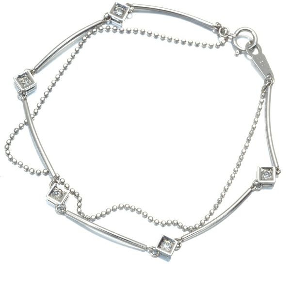 ダイヤ ダイヤモンド 0.20ct ステーション スクエア ボールチェーン 2連 ブレスレット Pt850 【中古】GENJ