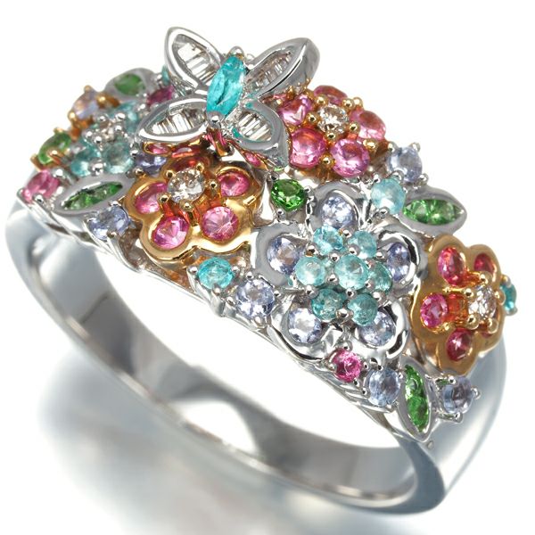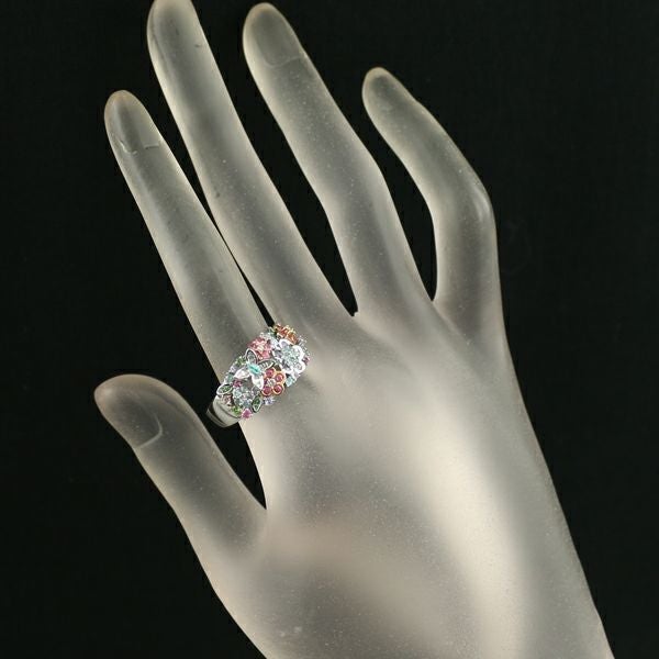パライバトルマリン ダイヤ ダイヤモンド サファイア フラワー 蝶 バタフライ アニマル マルチカラー リング K18WG/PG 【中古】GENJ