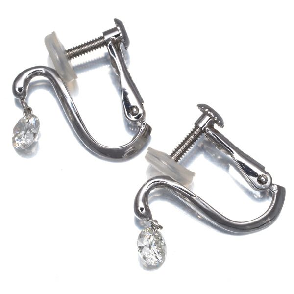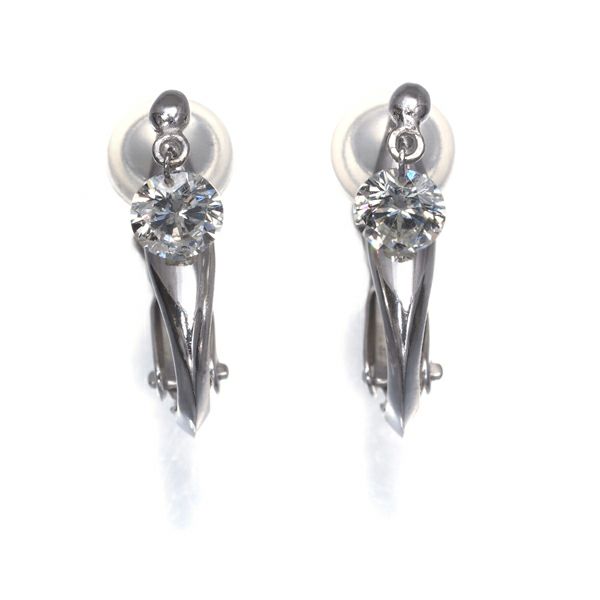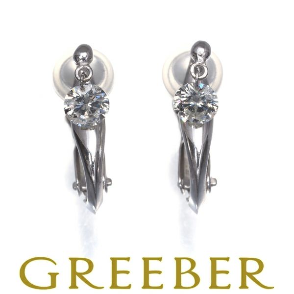 【ポイントアップ対象商品】ダイヤ ダイヤモンド 0.20ct/0.20ct 一粒 揺れる イヤリング K18WG/K14WG 【中古】GENJ