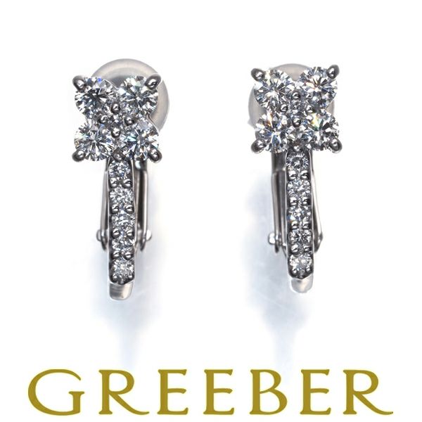 【ポイントアップ対象商品】ダイヤ ダイヤモンド 0.55ct フラワー イヤリング Pt900/K14WG 【中古】GENJ