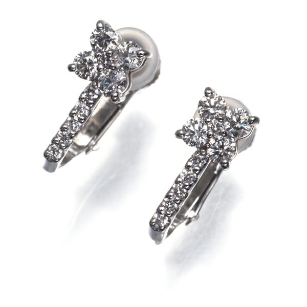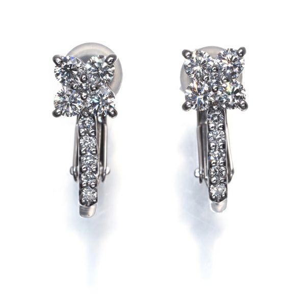 内包物も少ない上質ダイヤモンドの輝きをフラワーセッティングで敷き詰めた美しいイヤリング。瑞々しく煌びやかな輝きが耳元を上品に演出してくれますよ。