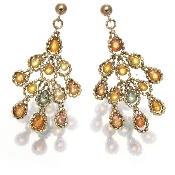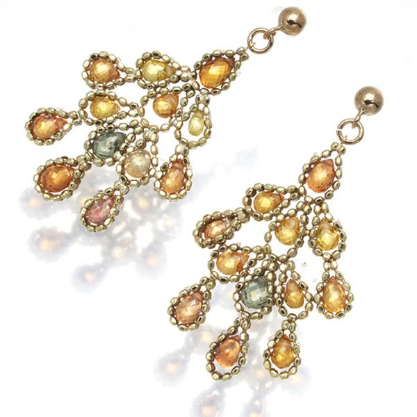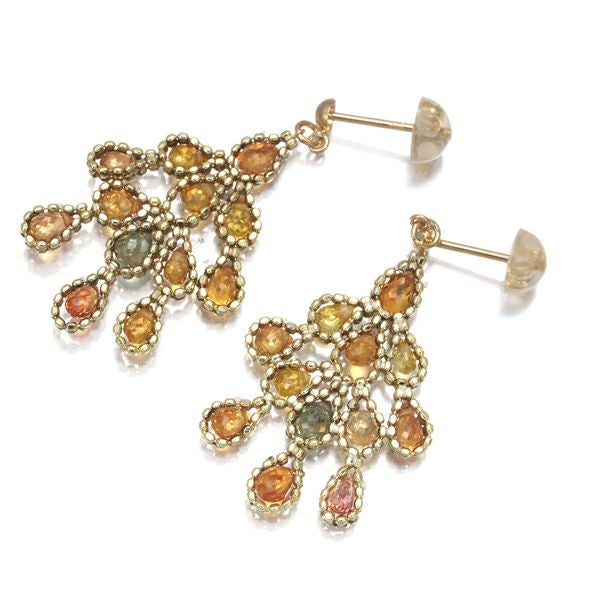 イエロー、オレンジ、グリーンカラーのサファイアがシャンデリアのように煌めくピアスジュエリー。