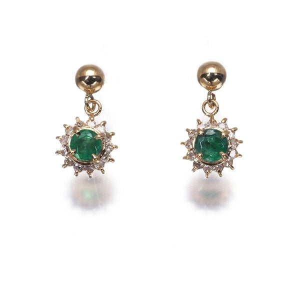 エメラルド ダイヤ ダイヤモンド 0.07ct/0.07ct クラシック ピアス K18YG 【中古】GENJ