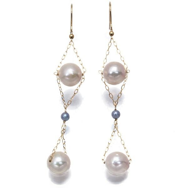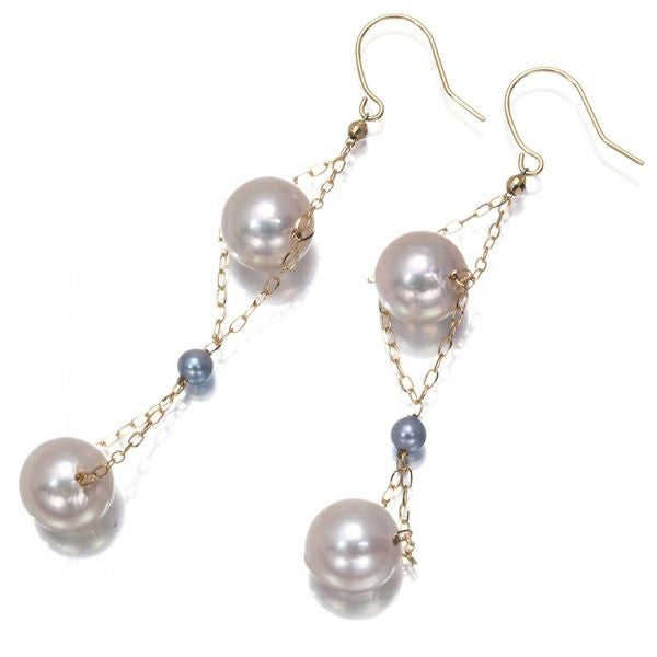 多少のエクボや巻きムラも耳元では感じさせない艶やかな輝きが 装いにエレガントに揺れるアコヤ真珠を飾ったピアスです。