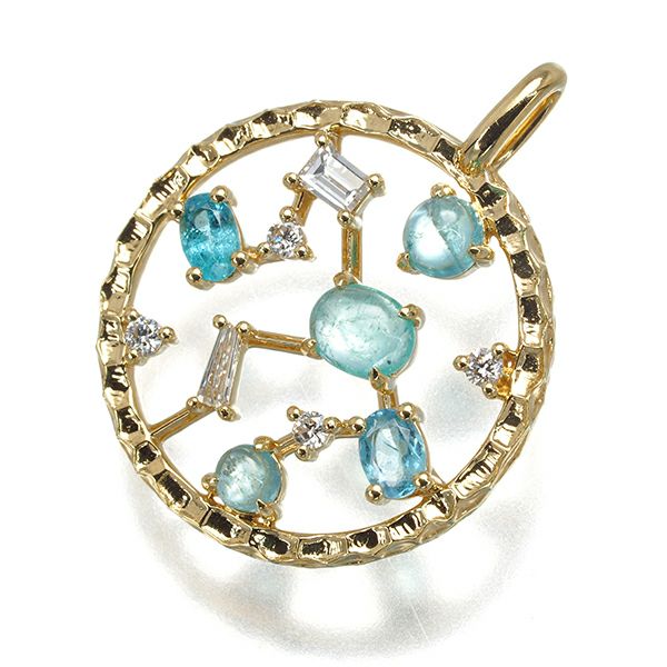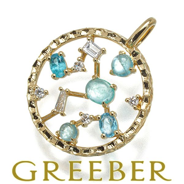 パライバトルマリン 0.42ct ダイヤ ダイヤモンド 0.113ct 3種カット 透かし ペンダントトップ K18YG 鑑別書【中古】GENJ