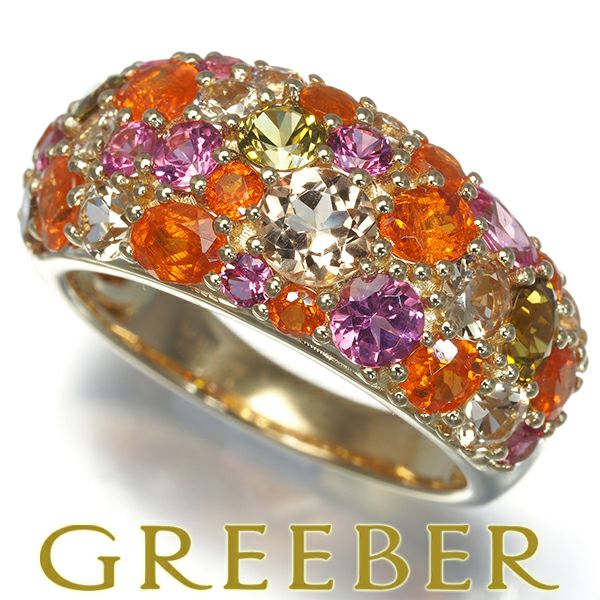 【ポイントアップ対象商品】ガーネット 1.37ct インペリアルトパーズ 1.13ct サファイアトルマリン リング K18YG ソ【中古】GENJ