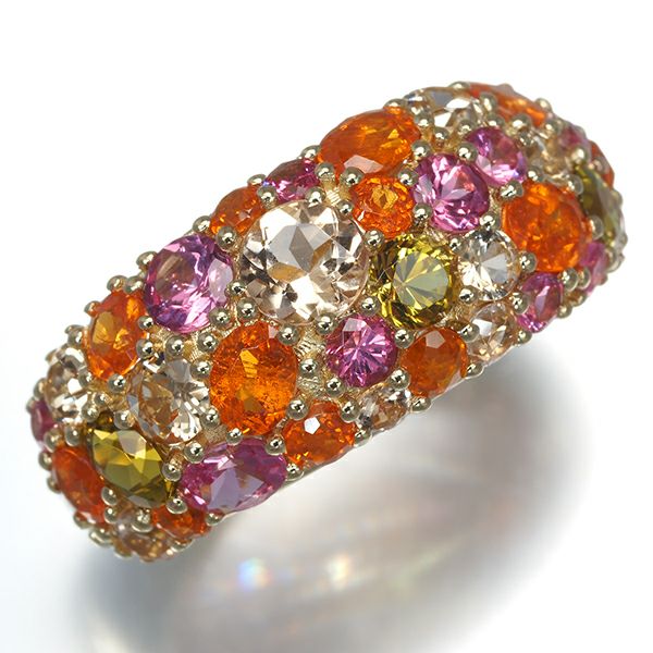 彩り鮮やかなマルチカラーの宝石を豪華パヴェセッティングで演出したリング。お手元に華やかかつ上品なアクセントを与えてくれるお品を是非どうぞ。