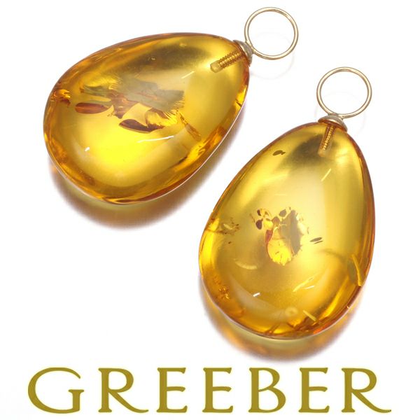琥珀 コハク チャーム ピアス K18YG 【中古】GENJ