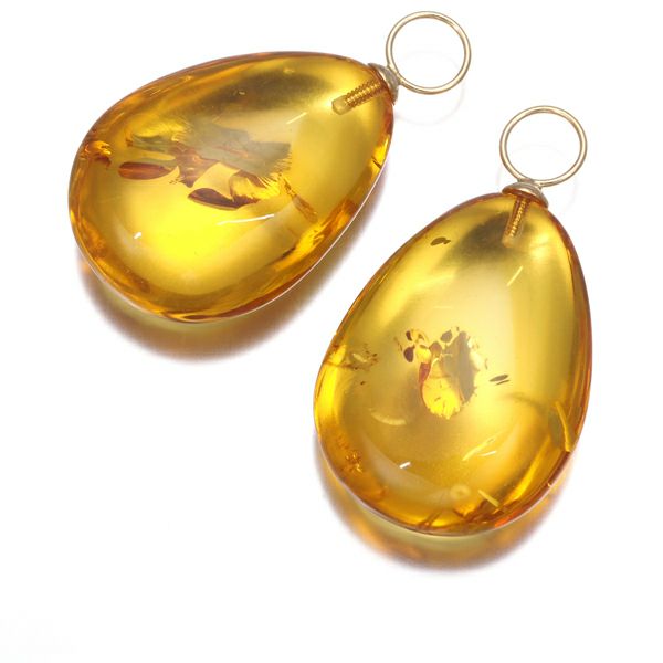 耳元でボリュームある存在感を披露する琥珀。瑞々しい透明感とサンスバングルの神秘的な煌めき美しいチャームです。