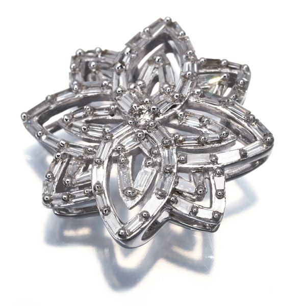 ダイヤ ダイヤモンド 0.47ct オープンワーク フラワー 2種カット ペンダントトップ K18WG 【中古】GENJ