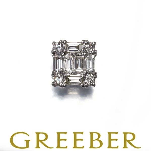 ダイヤ ダイヤモンド 0.30ct バゲット 2種カット 片耳 ピアス Pt900 【中古】GENJ