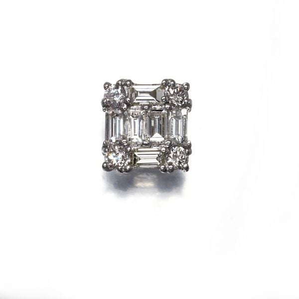 仄かな色味がございますが、上質な透明感を持つ2種カットのダイヤモンドを飾ったスクエアピアスです。