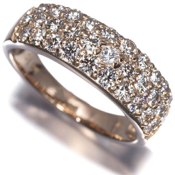 仄かな色味を持つ上質ダイヤモンドの煌びやかな輝きをぎっしりとパヴェセッティングした贅沢なリング。総計1ctものボリュームを存在感のある1石1石から放たれる眩い輝きにお楽しみください。