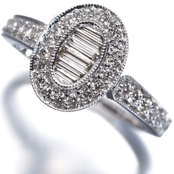 【ポイントアップ対象商品】ダイヤ ダイヤモンド 0.544ct バケット 2種カット ミルグレイン リング K18WG 【中古】GENJ