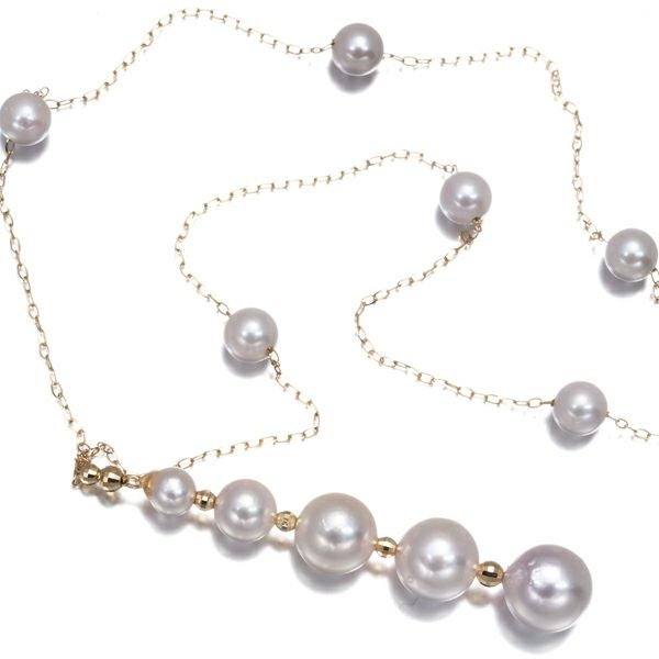 パール 真珠 4.2-7.8mm ステーション Yドロップ ネックレス K18YG 【中古】GENJ