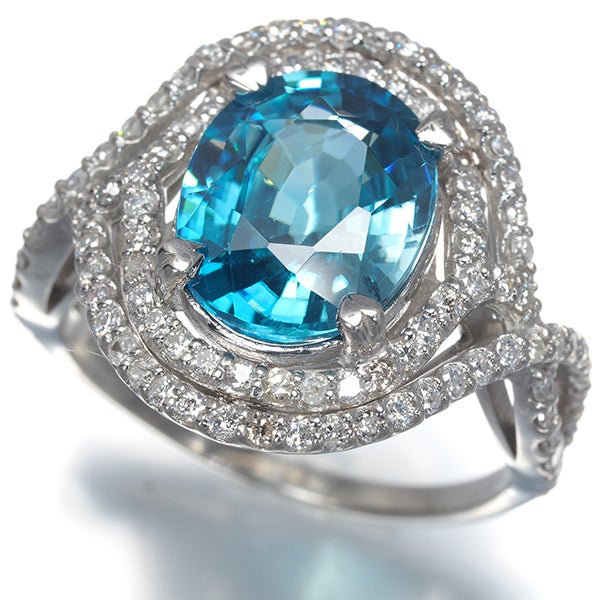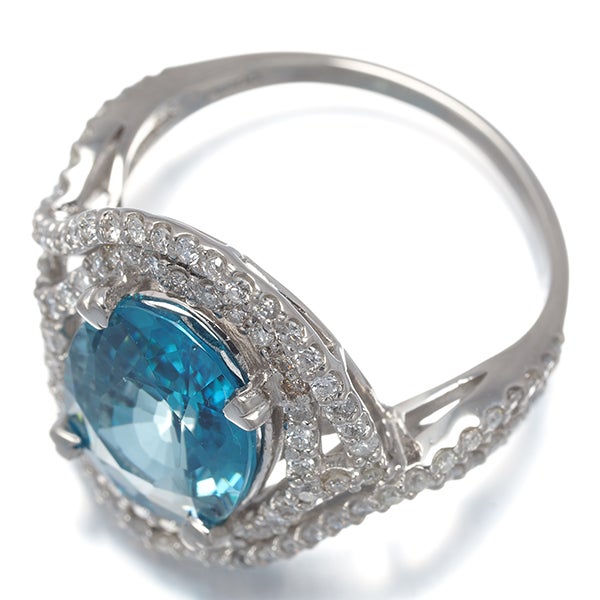 【スプリングキャンペーン!11%対象商品】ブルー ジルコン 5.292ct ダイヤ ダイヤモンド 0.90ct リング Pt900 ソーティング【中古】GENJ