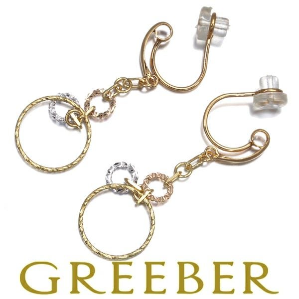スリーカラー サークル 揺れる イヤリング K18YG/WG/PG 【中古】GENJ