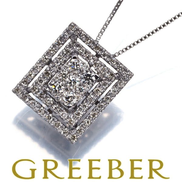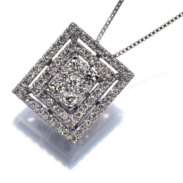 ダイヤ ダイヤモンド 0.50ct スクエア ネックレス K18WG 【中古】GENJ