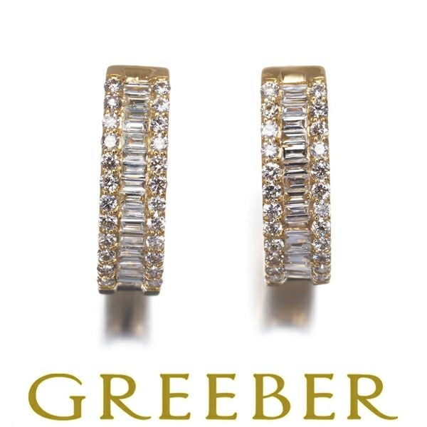 ダイヤ ダイヤモンド 0.35ct/0.35ct フープ テーパーカット 2種カット ピアス K18YG 【中古】GENJ