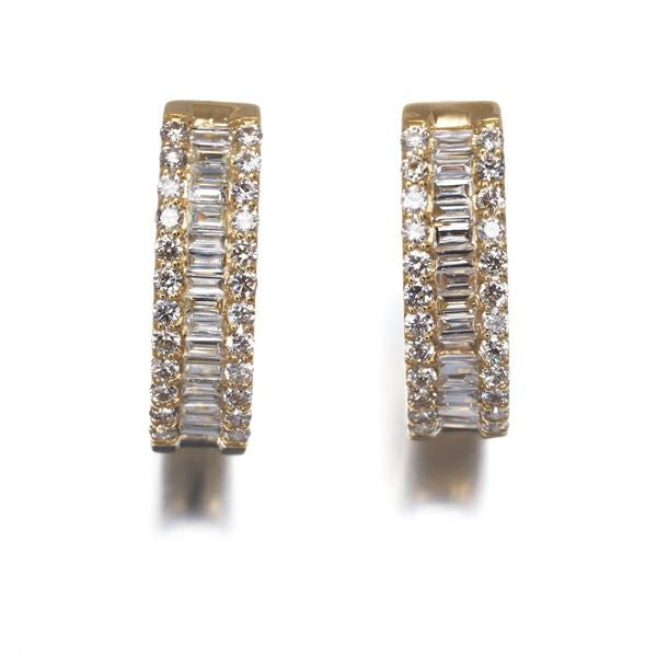 上質な透明感を持つテーパー&ラウンドカットのダイヤモンドをフープデザインへ敷き詰めたピアス。眩いテリと瑞々しく繊細な輝きが耳元を華やかかつ上品に演出してくれますよ。