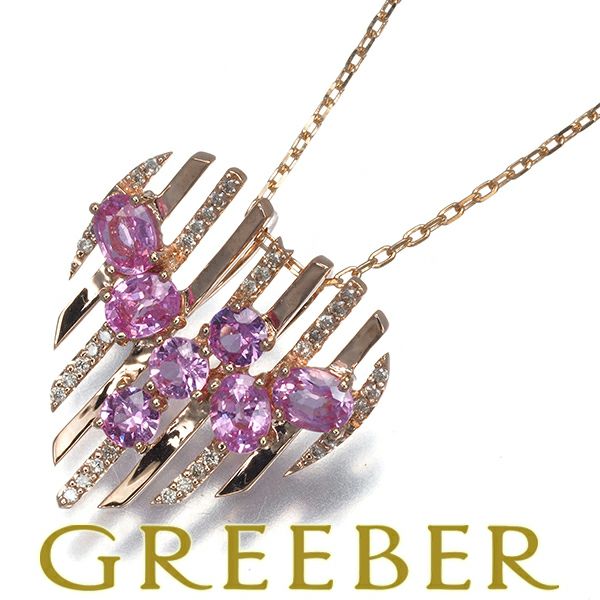 ピンクサファイア ダイヤ ダイヤモンド 0.10ct ハート ネックレス K10PG 【中古】GENJ