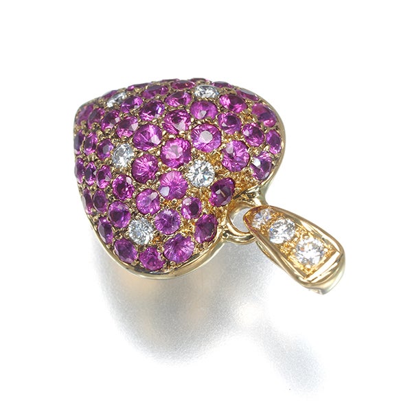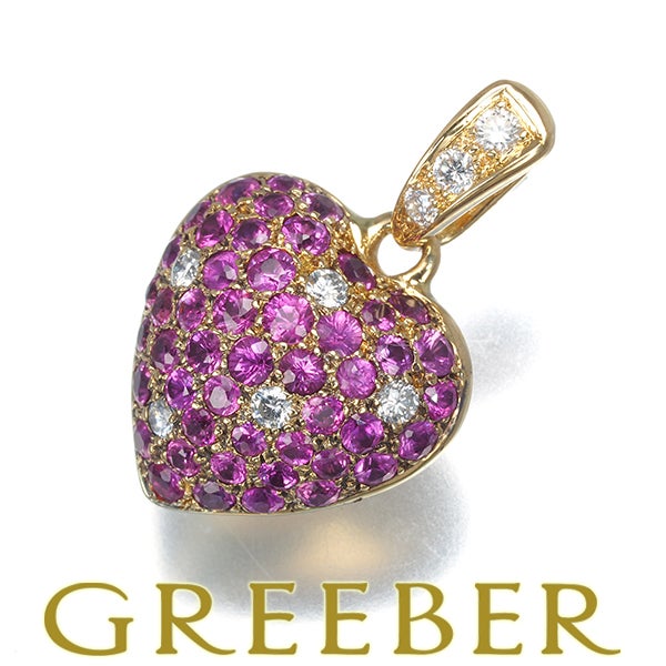 ピンクサファイア 1.05ct ダイヤ ダイヤモンド 0.13ct ハート パヴェ ペンダントトップ K18YG 【中古】GENJ
