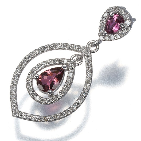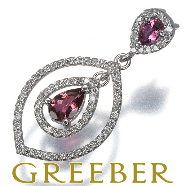 ピンクトルマリン 0.47ct ダイヤ ダイヤモンド 0.39ct ティアドロップ クラシック ペンダントトップ K18WG【中古】GENJ