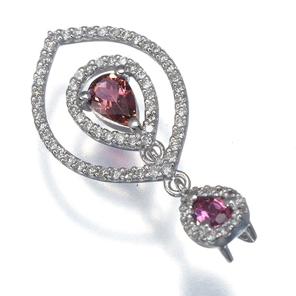 繊細なメレダイヤの煌めき美しいオープンワークの揺らめくデザインへ上品な彩を纏ったトルマリンを飾ったエレガンス漂うペンダントジュエリーです。