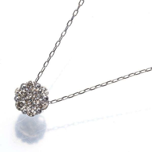 ブラウンダイヤ ダイヤモンド 0.20ct フラワー ネックレス K18WG 【中古】GENJ