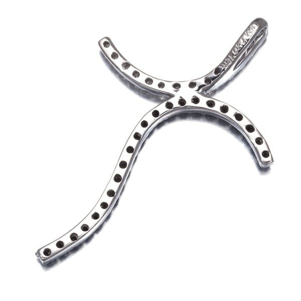 ユニークな曲線を描くブラックダイヤとクリアダイヤの煌めきでクロスモチーフを演出したペンダントトップ。繊細なクリアと眩いブラックの美しいコントラストと共に胸元を印象的に照らしてくれます。