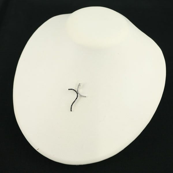 ブラック&クリア ダイヤ ダイヤモンド クロス ペンダントトップ K18WG 【中古】GENJ