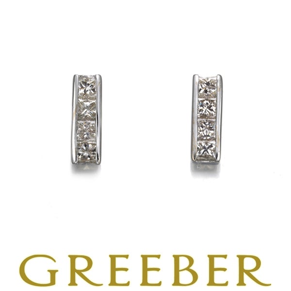 ダイヤ ダイヤモンド 0.15ct/0.15ct レールセッティング プリンセスカット ピアス K18WG 【中古】GENJ