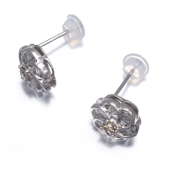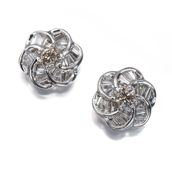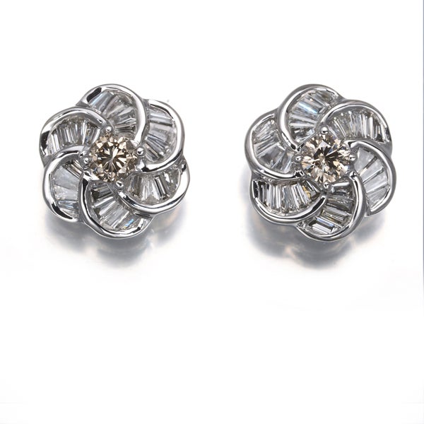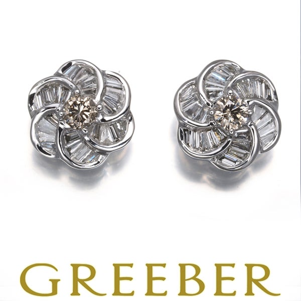 ブラウン&クリア ダイヤ ダイヤモンド フラワー 2種カット ピアス K18WG 【中古】GENJ