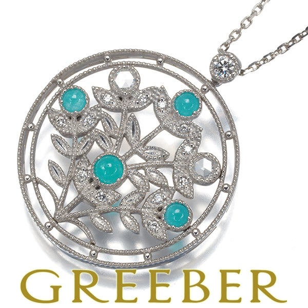パライバトルマリン 0.35ct ダイヤ ダイヤモンド 0.22ct ローズカット ミルグレイン ネックレス K18WG ソ【中古】GENJ